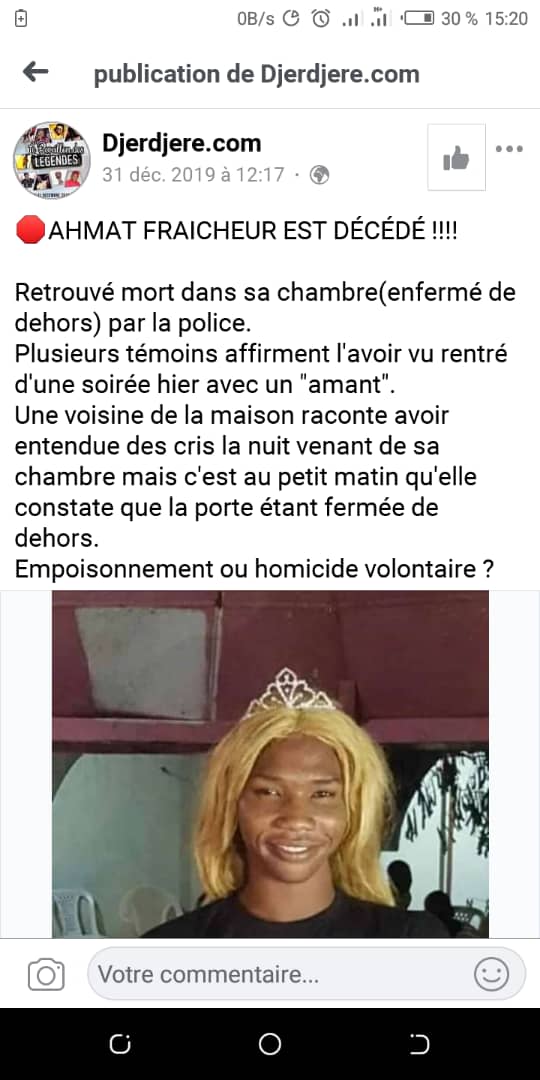Commentaires suite à la mort de Ahmat Fraîcheur.