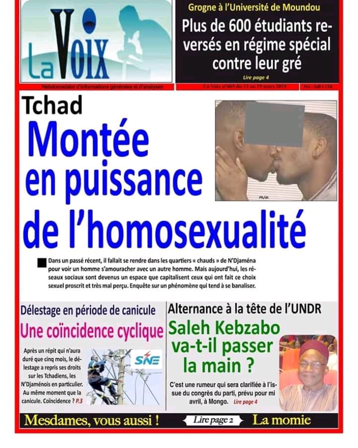 C’est en mars 2019 que le site Tchadhanana diffuse cet article publié en première page de l’hebdomadaire tchadien La Voix. Dans un passé récent, il fallait se rendre dans les quartiers « chauds » de N’Djaména pour voir un homme s’amouracher avec un autre homme. Aujourd’hui, les réseaux sociaux sont devenus un espace que capitalisent ceux qui ont fait ce choix sexuel proscrit et très mal perçu. Enquête sur un phénomène qui tend à se banaliser. L’article fait référence à une vidéo diffusant un spectacle donné dans un bar. Les mains appuyées contre un poteau, celui qui se fait appeler « Ahmat Fraîcheur », se livre à une lascive danse mettant en mouvement son postérieur. Titrant Montée en puissance de l’homosexualité, le journal profite de ce fait divers pour faire croire à une menace qui planerait sur le pays. Il en profite pour revenir sur les protestations, au pays et à l’international, contre l’article 361 bis du projet de nouveau code pénal tchadien en 2014, comme le rapportait un article de Radio France international. Les organisations de défense des droits de l’Homme se mobilisent contre l’article 361 bis du projet de nouveau code pénal tchadien. Si cet amendement est adopté, l’homosexualité sera punie de 15 à 20 ans de prison. La FIDH et sa ligue au Tchad, la LTDH, condamnent cette réforme. L’article de la Voix en tire une conclusion qui trahit sa position éditoriale. (…) le Tchad courbe l’échine et introduit des modifications substantielles au texte pénal sans dépénaliser pour autant l’homosexualité. Cela aurait été mal accueilli par une population qu’on dit à plus de 50% musulmane. La table est mise pour une utilisation des minorités LGBT comme boucs émissaires d’une joute politique. |